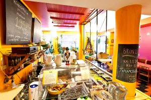 Tarjoilemme päivittäin monipuolista, intialaisittain maustettua kasvisruokaa, jonka valmistamme alusta asti itse tuoreista raaka-aineista. Leivomme päivittäin myös tuoreita sämpylöitä. Lounaslinjastoltamme löydät myös erittäin runsaan salaattipöydän raaste-ja vihersalaattien lisäksi myös ruokaisammat pasta-, riisi- ja kvinoasalaatit sekä erilaisia hummuksia, marinadeja ja chutneyta. Kaikki vegaanista!